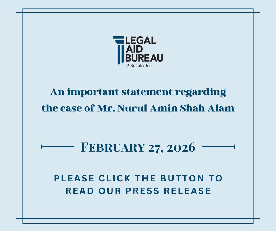 The Legal Aid Bureau of Buffalo acknowledges the intense and widespread interest and outrage related to the tragic case of Mr. Nurul Amin Shah Alam…